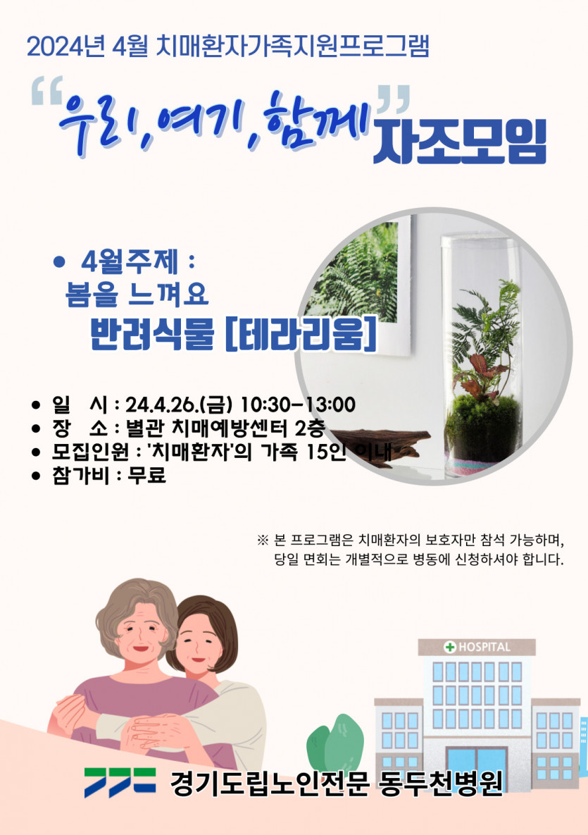 2024년 4월 치매환자가족 자조모임 [우리,여기,함께] 일정 안내 ★날짜변경4/26