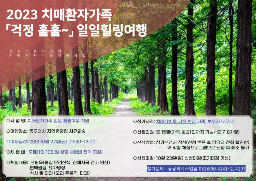 일일 힐링여행」을 지원하고자 합니다.(※환자동반 불가)